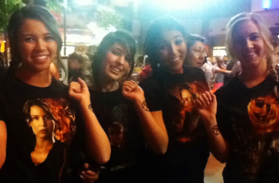 Hunger Games Premiere March 28, 2012 / mkeofutah1 The energy at the movie theater before a big movie release is always so incredible!! We had such a fun time seeing everyone decked out in costume and getting cool glimmer tattoos. By far the most popular was the mockingjay pin! So fun! Share this: Click to share on X (Opens in new window) X Click to share on Facebook (Opens in new window) Facebook Like Loading... Related