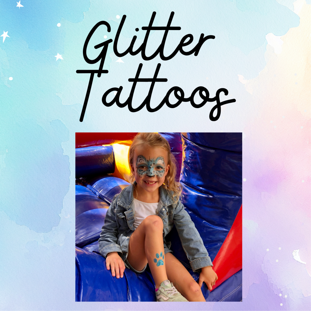 Temporary Glitter Tattoos are perfect for high-volume or water events. These tattoos have extreme sparkle, are water resistant, and last up to 5 days depending on skin type. Let My Kids’ Entertainment make your event the talk of the town! Pricing is the same as face painting, however, as an add on service, the rate is discounted to $90 per hour!