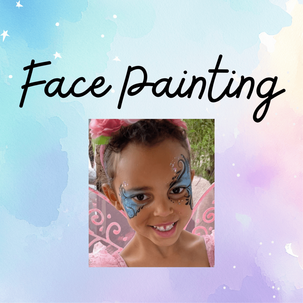 My Kids’ Entertainment offers high-quality, safe face painting services. We love to see a child’s face light up in the mirror after they see their transformation. The rate for face painting is $135 for the first hour, and $110 per hour after that. Face Painting is by far our most popular service! *Please note: there is a 1 1/2 hour minimum from April-October.